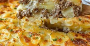 Rich, cheesy, and irresistibly comforting, this Cheesy Hamburger Potato Casserole combines layers of tender potatoes, seasoned ground beef, creamy mushroom…