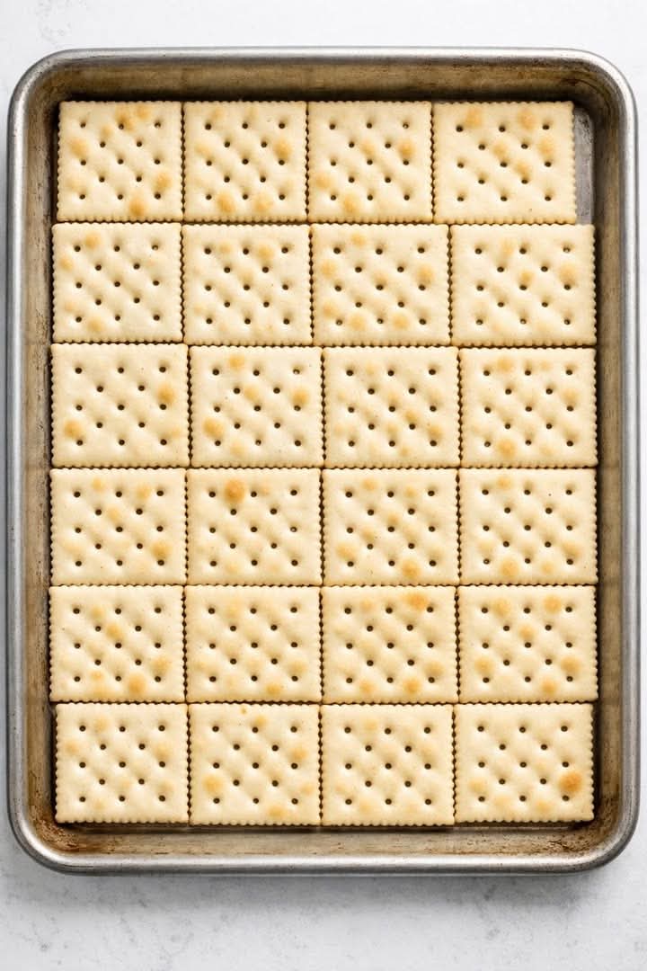 Arrange the saltine crackers in a single tight layer on the prepared baking sheet. You may need to break some crackers to fit the edges perfectly. - Make the Toffee: