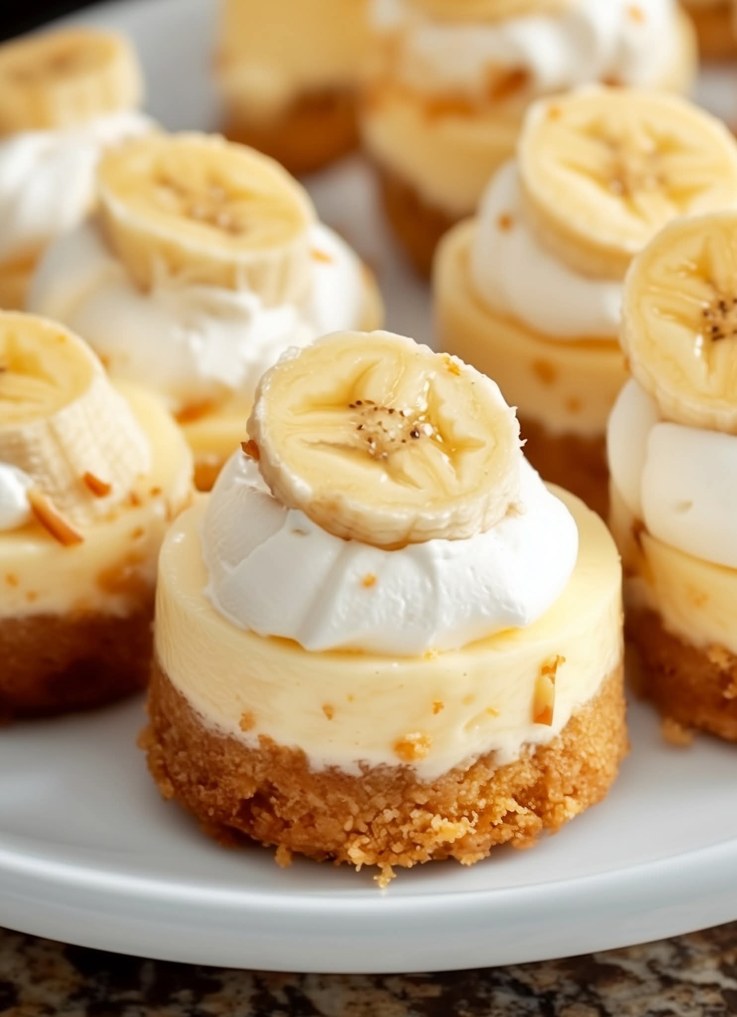 This isn’t just another dessert—it’s comfort food reinvented. Inspired by Southern banana pudding and retro Jell-O-era treats, these mini cheesecakes deliver big flavor without turning on the oven. They’re rich but not heavy, sweet but refreshingly bright, and perfect for satisfying a late-night craving or impressing guests at any gathering. The layers of buttery crust, creamy banana filling, and fresh banana on top create a nostalgic yet elevated dessert experience.